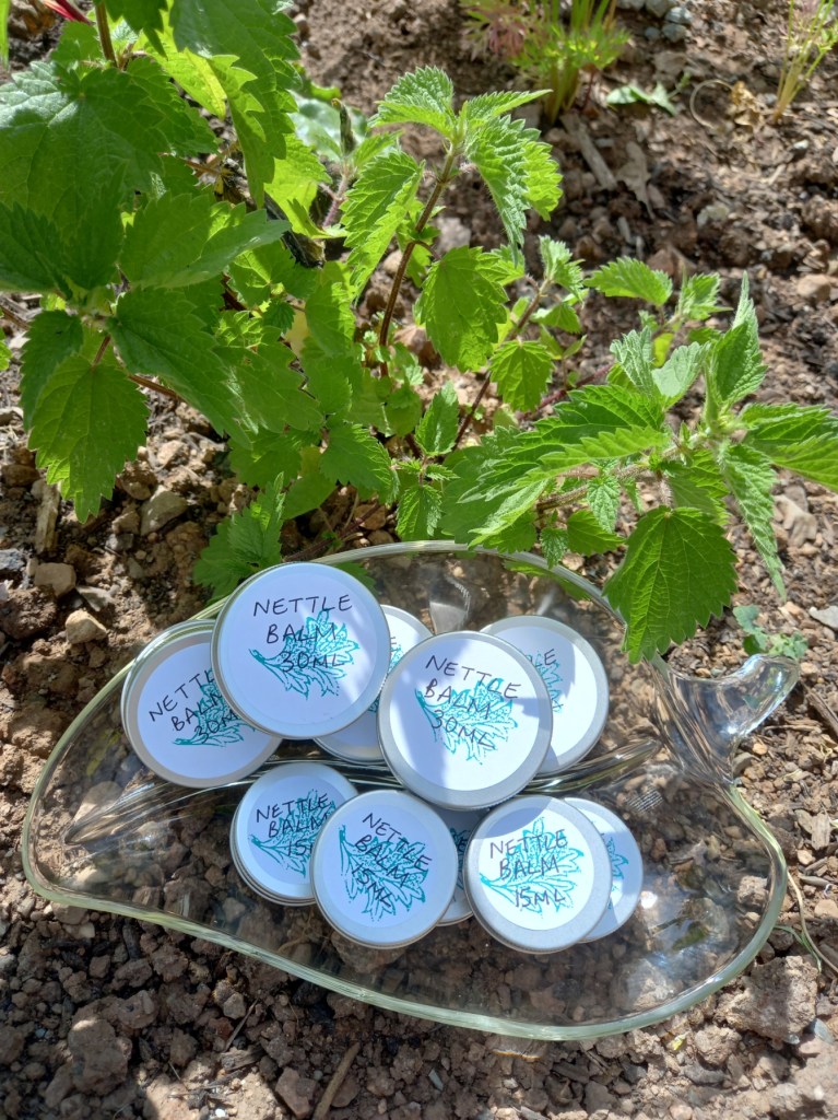 - Natural Products: Small bastch, handcrafted products featuring nettles and other garden herbs. Nettle salve, nettle soap, herbal tea mixes, herbal balms and household cleaning products. Direct sales via markets, workshops and website. Wholesale to local shops.